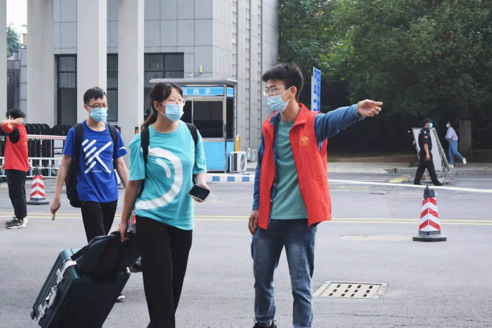 20余名研究生党员志愿者分别于学校北大门服务点、门口乘车服务站、乾园服务点进行迎生返校防疫志愿服务活动。
