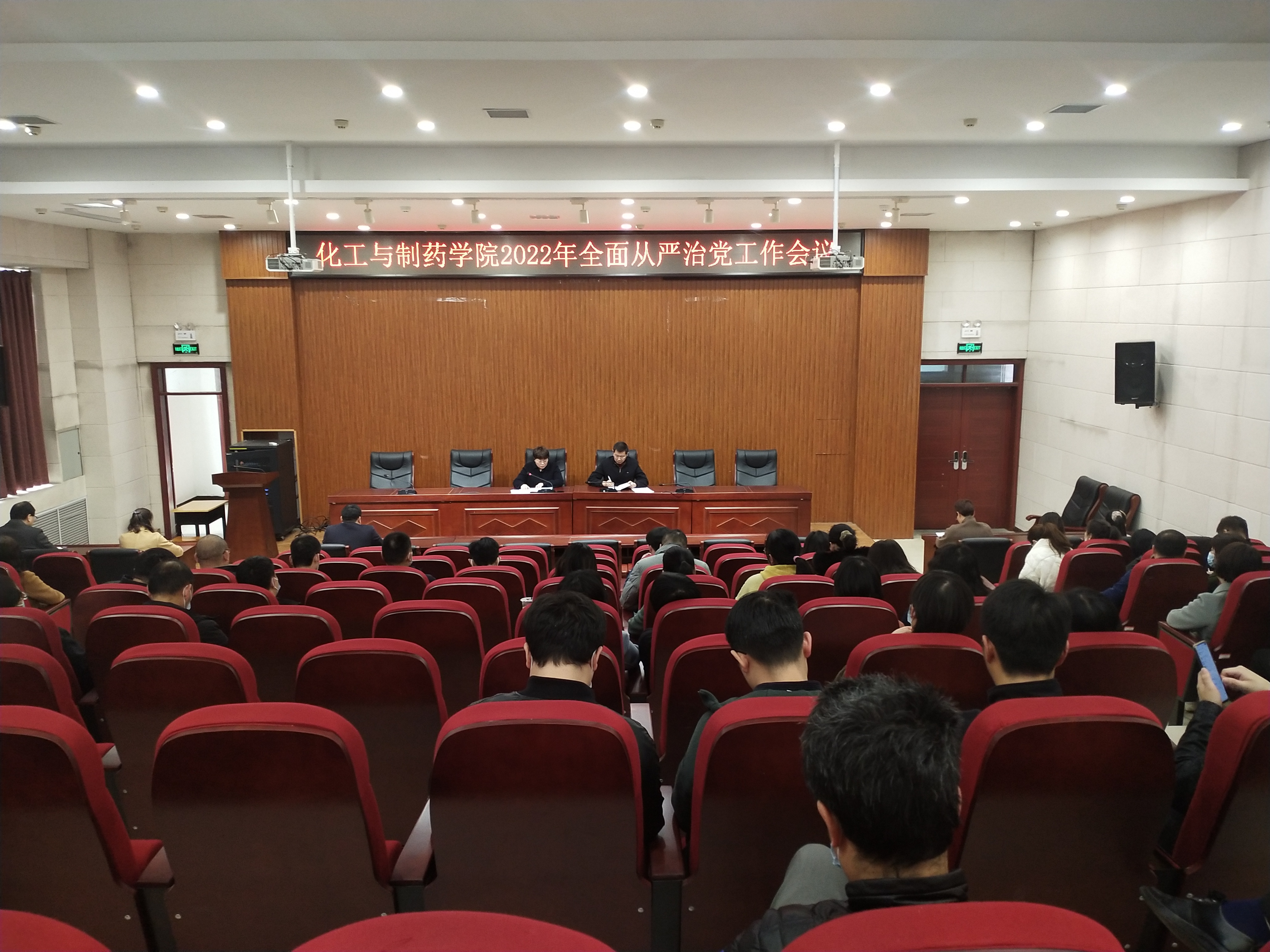3月3日下午,化工与制药学院在工科5号楼112报告厅召开2022年全面从严治党工作会议。院领导班子、全体教工参加会议。会议由院长马军营主持。