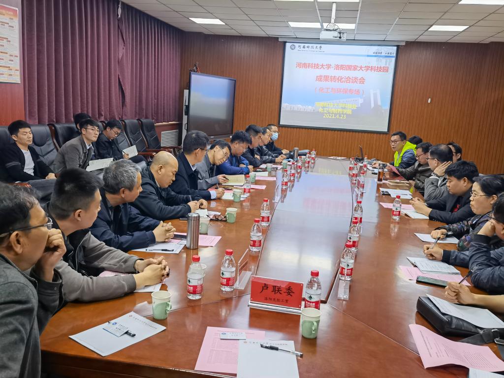 -洛阳大学科技园成果转化对接洽谈会(化工与环保专场)在工科5-227会议室召开。科技处张项民主任、洛阳国家大学科技园副总经理马军林、化工与制药学院副院长魏学锋、副院长李军波、系室负责人和科研骨干代表、大学科技园企业家代表参加会议。会议由张项民主任主持。