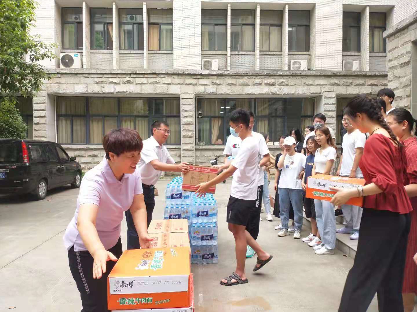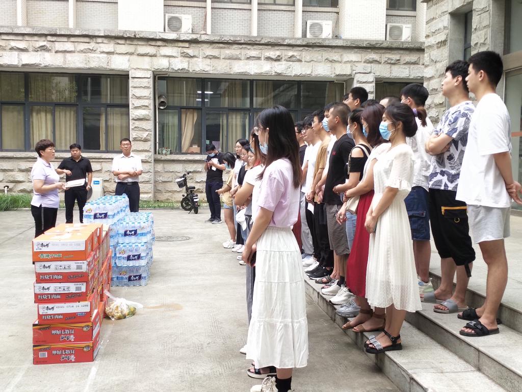 随后,学院领导向留校同学们发放慰问品。同学们对学院暖心慰问表示衷心感谢,纷纷表示要认真遵守学校的各项管理规定,严格执行学校疫情防控要求,合理利用暑假时间,努力科研,用优异成绩回馈学院关怀。