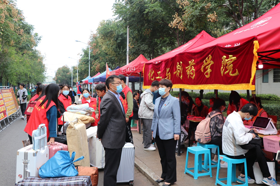 8日上午10点院党委书记于淑敏、院长马军营、院党委副书记马东辉、副院长张延萍、魏学锋、李军波,各年级专兼职辅导员,来到迎新现场,与学生亲切交谈,了解新生报到情况以及迎新工作中遇到的问题。