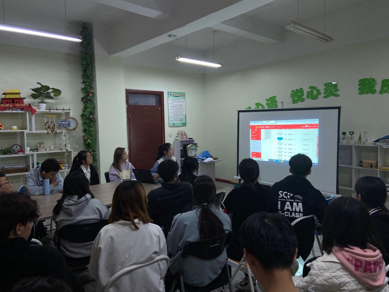 会议开始后,郭筱涵首先登入智慧团建的界面,向与会人员展示会议内容;之后她根据智慧团建的相关操作步骤,以清晰、通俗的语言为与会人员详细讲解了智慧团建的操作方法。此次会议不仅专业详细地讲解每个部分的功能,还通过举例示范操作,让与会人员更加清楚了解智慧团建的操作方法。