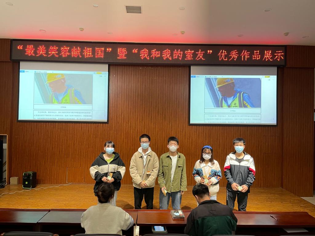 六份获奖作品分别是:化工213李振莹的“恰好合拍”、化工216李盼盼的“十八岁的天堂”、制药202焦彩虹“快让让,仙女出山了”、制药211张铁毅的“舍长的名义”、化工214支威振的“新生活,新室友”和化工212郑天博的“同心共赴新征程”。其次,本次活动通过线上播放的形式向到场同学展示这六份优秀作品。这六份作品各有其特色和表达主题。“恰好合拍”、“十八岁的天堂”和“快让让,仙女出山了”展示宿舍舍友情谊和丰富多彩的校园生活;“舍长的名义”告诫同学们不要使用违规电器;“新生活,新征程”和“同心共赴新征程”展示出在大学不止是单纯学习,还能通过奉献创造价值,和朋友经历困难积极迎向未来。最后,任正兵和郭筱涵为获奖同学颁发奖品。主持人曹爽、张梦楠宣布活动顺利结束。